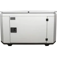 Бензиновый генератор оснащен электростартером, благодаря которому двигатель быстро запускается поворотом ключа в замке зажигания. Для подключения потребителей на панели находятся три розетки 230 В: две на 16 А и одна силовая на 32 А. Через USB-разъем можно заряжать мобильные устройства. На цифровом дисплее отображаются текущие данные о напряжении, частоте тока, количестве моточасов, а также индикатор низкого уровня моторного масла. Выход АВР позволяет подключить оборудование, автоматически запускающее генератор при отключении центрального электроснабжения. Автоматы защиты на каждой розетке срабатывают при подключении избыточной нагрузки.