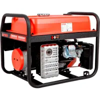 Бензиновый генератор оснащен электростартером. Двигатель запускается поворотом ключа в замке зажигания. Для подключения потребителей на панели находятся две розетки 230 В: бытовая на 16 А и силовая на 32 А. Через USB-разъем можно заряжать мобильные устройства. На цифровом дисплее бензогенератора отображаются текущие данные о напряжении, частоте тока, количестве моточасов, а также индикатор низкого уровня моторного масла. Выход АВР позволяет подключить оборудование, автоматически запускающее генератор при отключении центрального электроснабжения. Переключатель режима работы «зима/лето» используется для стабильного запуска в разных погодных условиях.