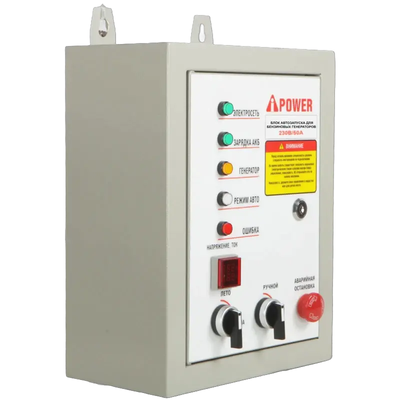 Это устройство сделает ваш генератор A-iPower автономным источником резервного электроснабжения. Блок автозапуска самостоятельно запустит генератор и автоматически заглушит его, когда в центральной электросети снова появится напряжение. В комплекте идёт длинный 8-метровый соединительный провод.