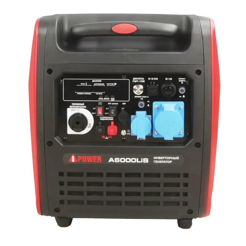 Инверторный генератор A6000LiS оснащен USB розеткой 5А для зарядки гаджетов и удобной розеткой 12V прикуривателя. Стандартная розетка 230В имеет защиту от влаги и пыли IP44.