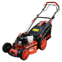 Работа газонокосилки обеспечивается за счет 4- тактного ДВС с воздушным типом охлаждения клапанов. Запуск мотора осуществляется ручным стартером. Привод идет на задние колеса.