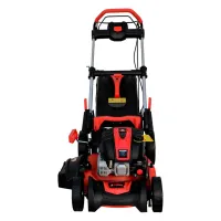 Конструкция косилки продумана до мелочей, стальная дека делает её устойчивой и удобной в управлении. Большие проходимые колеса. Работа в двух самоходных режимах, для медленного и быстрого кошения. Ширина скашивания 48 см, 6 уровней скашивания от 30 до 80 мм с центральной регулировкой.
