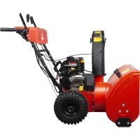 Самоходная машина движется с регулируемой скоростью, оставляя после себя расчищенную от снега полосу шириной 61 см. Бензиновый снегоуборщик A-iPower с ковшом высотой 54 см справляется с сугробами.