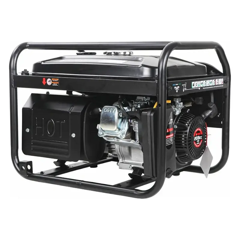 Бензиновый генератор работает без дозаправки в течение 8 часов при полной нагрузке. На цифровом дисплее отображаются текущие данные о напряжении, частоте тока и количестве моточасов. Индикаторная лампа сигнализирует о низком уровне моторного масла. На панели находятся две стандартные розетки 230 В/16 А для подключения потребителей. В случае перегрузки срабатывает защитный автоматический выключатель, который останавливает двигатель, предотвращая выход из строя генератора и подключенных к нему устройств.