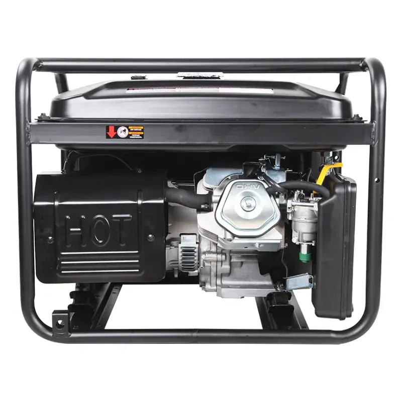 Бензиновый генератор работает без дозаправки 7 часов при полной нагрузке. Благодаря электростартеру двигатель быстро запускается поворотом ключа в замке зажигания. На цифровом дисплее отображаются текущие данные о напряжении, частоте тока и количестве моточасов. Индикаторная лампа сигнализирует о низком уровне моторного масла. Для подключения потребителей на панели находятся две розетки 230 В: стандартная на 16 А и силовая на 32 А. В случае перегрузки срабатывает защитный автоматический выключатель, который останавливает двигатель, предотвращая выход из строя генератора и подключенных к нему устройств.