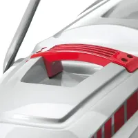 Во избежание случайного запуска предусмотрен выключатель двойного действия: с кнопкой блокировки и скобой. Двигатель останавливается автоматически, если вы перестаете удерживать скобу. Модель имеет удобную П-образную направляющую рукоятку, которую можно отрегулировать по высоте для вашего удобства и сложить для компактного хранения. В разобранном виде травокосилка помещается в багажник автомобиля.