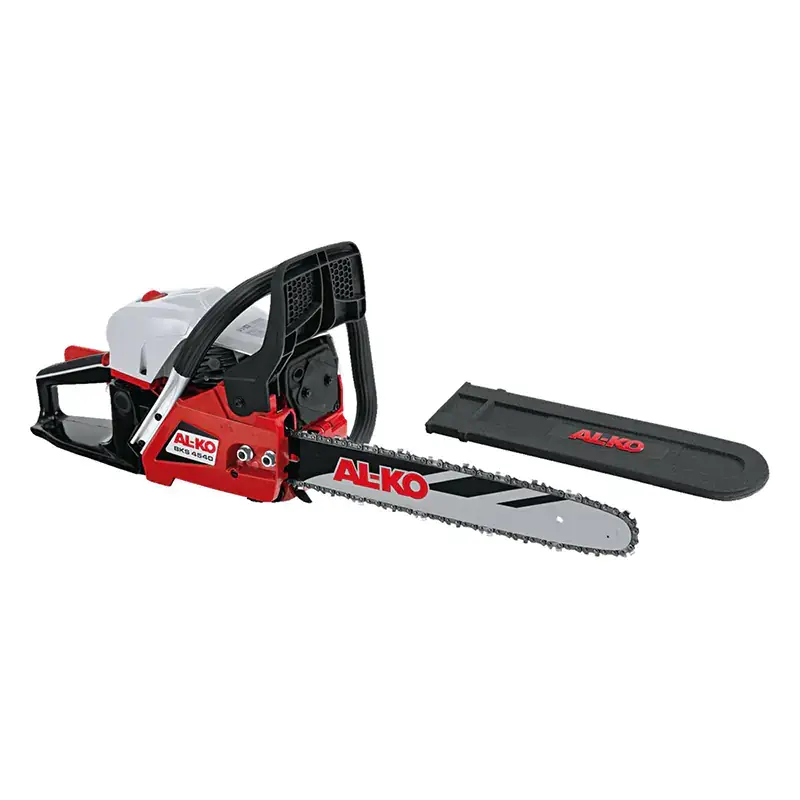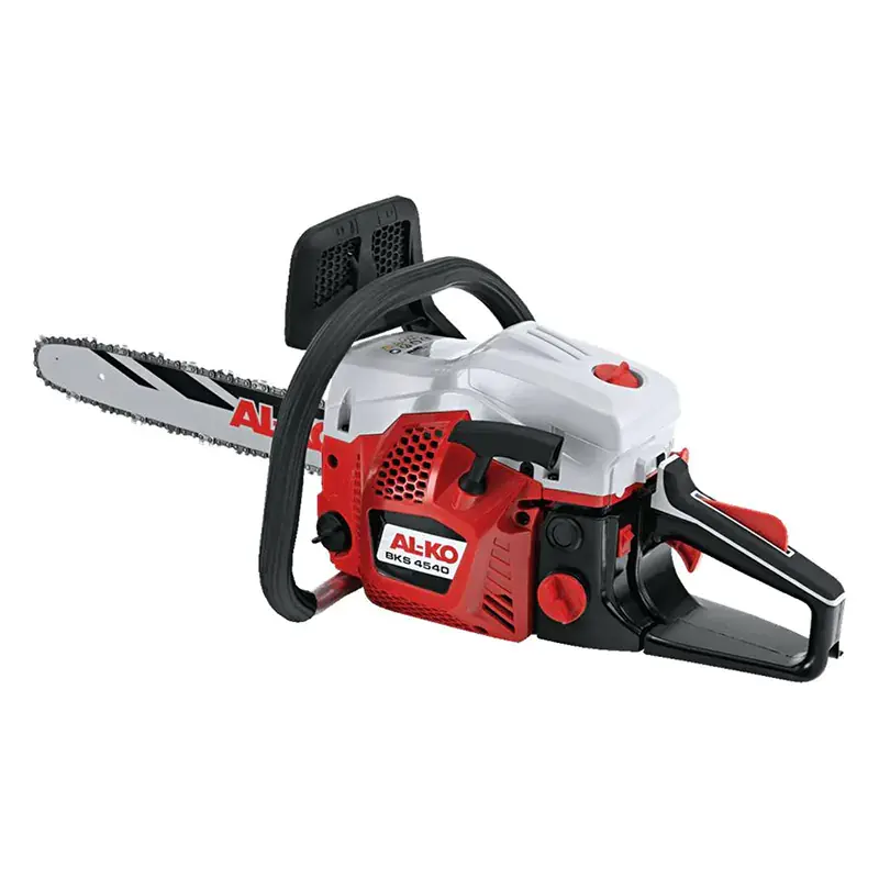 Бензопила AL-KO BKS 4540 бытового класса предназначена для валки деревьев, заготовки дров и прочих работ по распилу древесины. Устройство имеет корпус из прочного пластика и в целях безопасности оснащено тормозом и уловителем цепи. Пила оборудована двухтактным бензиновым двигателем мощностью 1,7 кВт. В комплект поставки входят защитный кожух, напильник для заточки зубьев, отвертка и ключ для регулировки натяжения пилы.