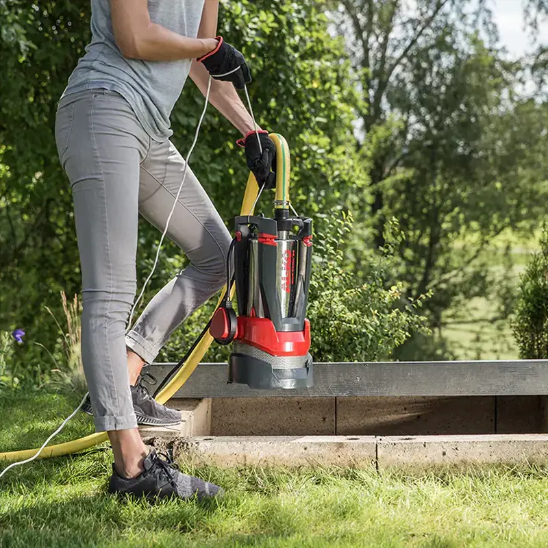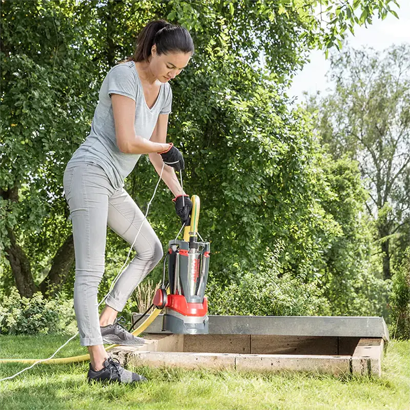 Погружной нагнетательный насос DIVE 5600/44 Automatic можно использовать для полива мобильно или стационарно благодаря практичной встроенной ручке для переноски и кабелю питания длиной 10 м, а также весу всего около 11 кг. Коррозионностойкие материалы, такие как нержавеющая сталь, из которой изготовлен корпус, и не требующие технического обслуживания компоненты гарантируют долгий срок службы насоса. Встроенная программа маленького расхода защищает от протекания напорных шлангов.
