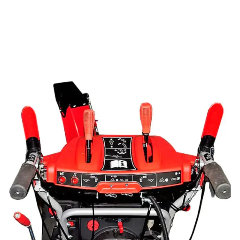 Рычаги и кнопки управления удобно расположены на мультифункциональной передней панели с подогреваемыми рукоятками. Направление выброса снега можно менять на 190°, вращая ручку, а для регулировки дальности достаточно изменить угол наклона дефлектора.