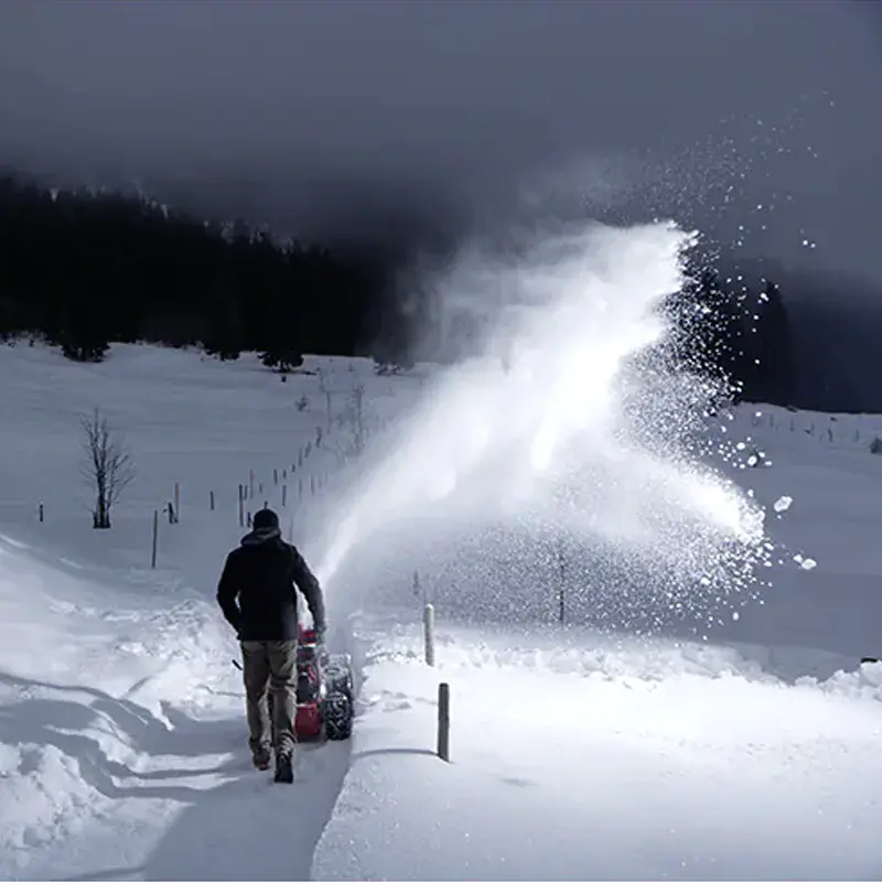Колеса с глубоким протектором обеспечивают устойчивость на льду и высокую проходимость по рыхлому снегу. Шнеки увеличенной ширины имеют специальную прочную конструкцию без сварных швов. Корпус выполнен из толстой стали и покрыт полиуретановой эмалевой краской, устойчивой к внешнему воздействию. Металлические полозья по бокам ковша позволяют менять расстояние от шнеков до очищаемой поверхности, чтобы не повредить во время уборки дорожное покрытие. Для безопасной работы в непогоду или в темное время суток предусмотрена яркая светодиодная фара.
