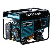 Бензиновый генератор STALKER SPG-7000E / 5кВт / 220В - предназначен для использования, в качестве аварийного источника электроснабжения. Всегда обязательно учитывайте суммарную мощность всех подключаемых приборов с учетом коэффициентов пусковых токов для каждого прибора. Не подключайте два, или более генераторов, параллельно. Бензиновый генератор состоит из бензинового двигателя внутреннего сгорания, генераторной части, несущей рамы, топливного бака и панели управления с выходами переменного и постоянного тока.
