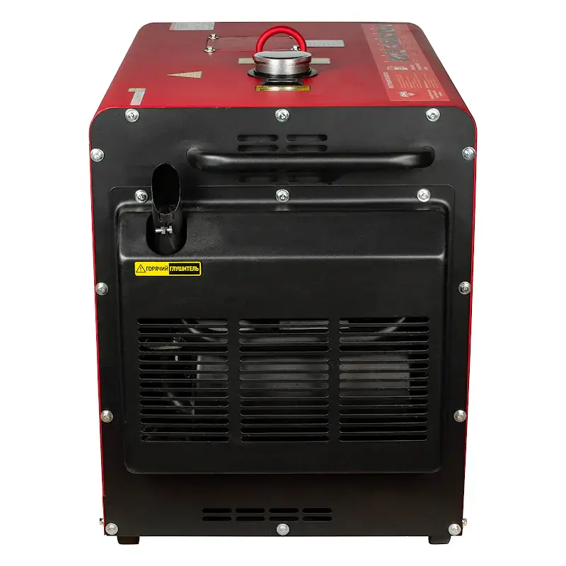 Благодаря электростартеру двигатель быстро запускается поворотом ключа в замке зажигания. Вместительный топливный бак на 14,5 литров обеспечивает продолжительную работу дизельного генератора без дозаправки. Количество топлива удобно отслеживать благодаря индикатору на крышке. На цифровом дисплее отображаются текущие данные о напряжении, частоте тока и количестве моточасов. Индикаторная лампа сигнализирует о низком уровне моторного масла. На панели находятся две розетки переменного тока 230 В на 16/32 А и выход постоянного тока 12 В для подключения потребителей. Разъем АВР позволяет подключить оборудование, которое автоматически запускает генератор при отключении центрального электроснабжения.