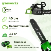 Аккумуляторная цепная пила Greenworks GD40CS18K8 (1 x 8 Ач, Быстрое ЗУ) 2005807U8F