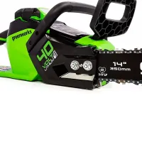 С беспроводной пилой GreenWorks GD40CS15 удобно работать в саду и других удаленных от розетки местах, безопасно использовать ее в закрытых помещениях. Двигатель питается от Li-Ion аккумулятора. Данная модель поставляется без батарей. Это особенно выгодно для тех, у кого уже есть любой аккумуляторный инструмент GreenWorks из серии G-MAX 40V.