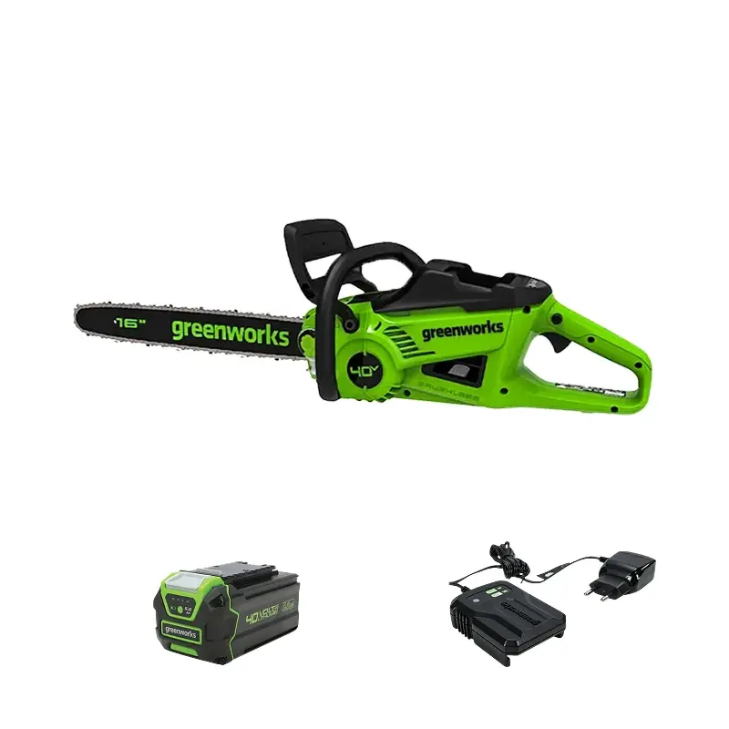 Цепная аккумуляторная пила Greenworks GD40CS20X - мощная цепная пила, которая отлично подойдет для полноценного ведения дачного хозяйства. Равнозначная замена бензинового инструмента или электрического инструмента с питанием от сети.