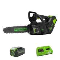 В комплект поставки также входят Аккумулятор Greenworks G40B5 (40 В, 5 Ач) и Быстрое зарядное устройство Greenworks G40UC5 (40 В, 5 А)