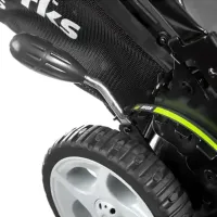 От младших моделей эта газонокосилка отличается более широкой полосой скашивания (45 см.), наличием функции бокового выброса травы и увеличенным мешком для сбора травы.