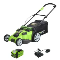 В комплект поставки так же входят Аккумулятор GreenWorks G40B2 (40 В, 2 Ач) и Зарядное устройство Greenworks G40UCM2M (40 В, 2 А)