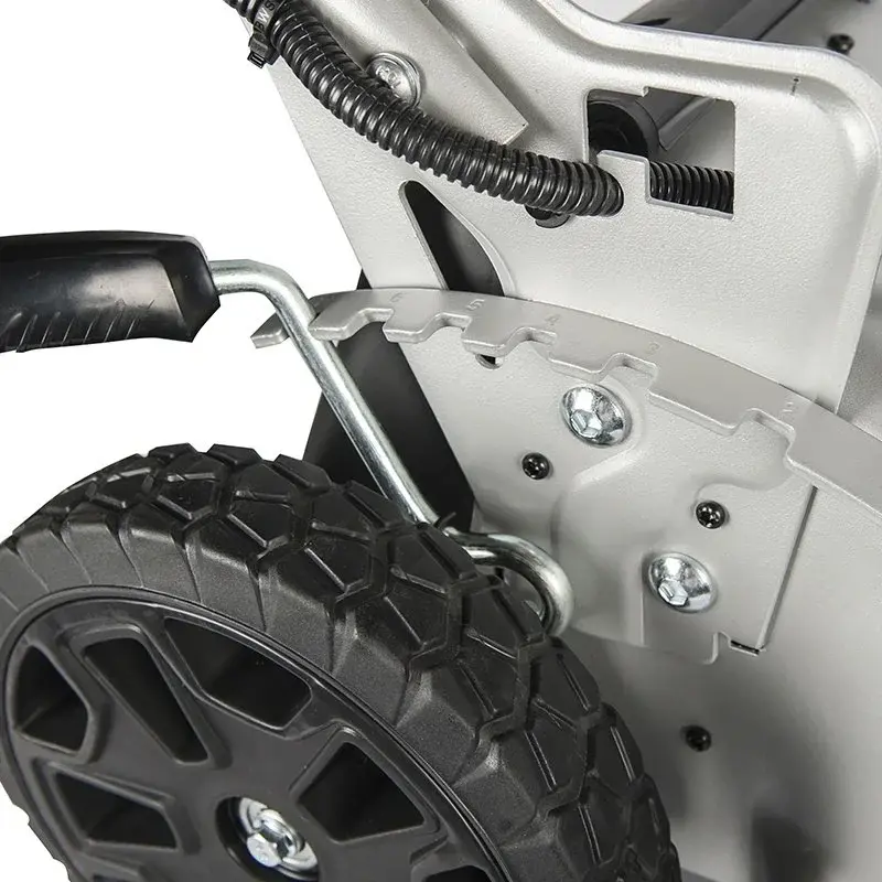 Высоту скашивания можно регулировать от 25 мм до 80 мм, со стальным приводом на все колеса.