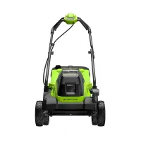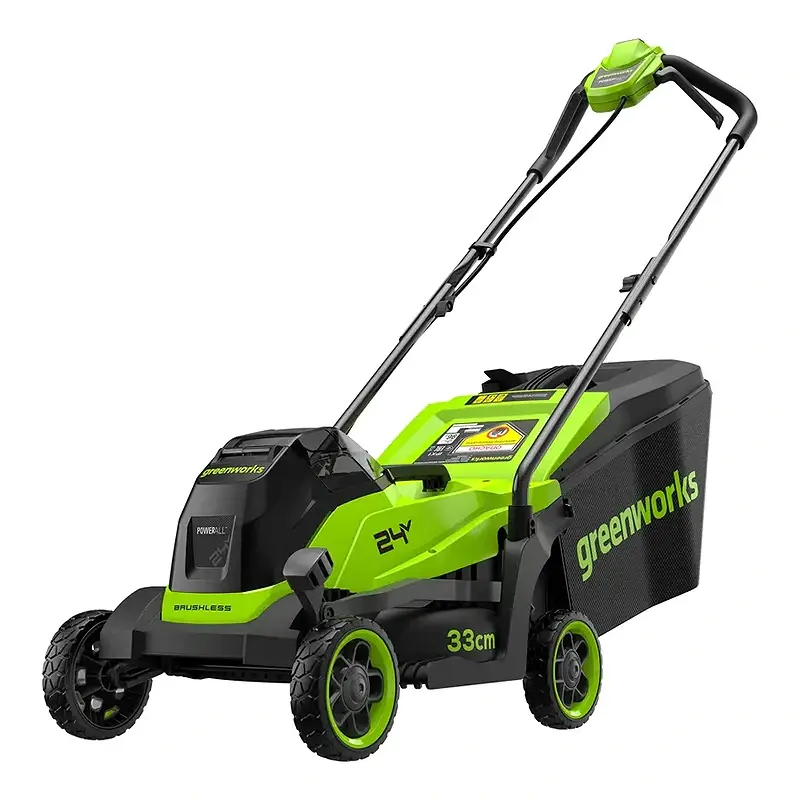 Сердце газонокосилки Greenworks GD24LM331 – фирменный двигатель DigiPro, который обеспечивает частоту вращения 3550 об/мин, не требует обслуживания из-за отсутствия щеток и эффективно использует заряд аккумулятора.