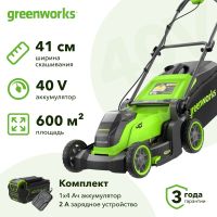 Аккумуляторная газонокосилка Greenworks GD40LM411 – готовое решение для эффективного и экологичного ухода за газоном. Устройство работает от аккумулятора напряжением 40 В, обеспечивая свободу передвижения и простоту использования без проводов и бензина. В комплект входит один аккумулятор емкостью 4 Ач и зарядное устройство, что позволяет начать работу сразу после приобретения.