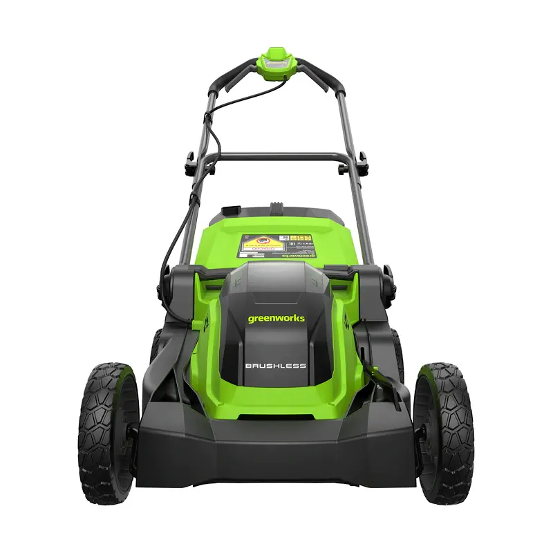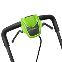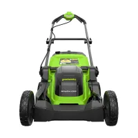 Благодаря усиленной деке газонокосилка Greenworks GD40LM411 выдерживает случайные удары мелкими камнями, а специальное покрытие предотвращает налипание травы. Увеличенные задние колеса диаметром 20 см обеспечивает плавное движение по неровностям. Эргономичная рукоятка настраивается под рост пользователя, а мягкие накладки снижают вибрацию и усталость при работе.