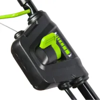 При наличии сменного аккумулятора можно работать без перерывов, так как скорость работы зарядного устройства превышает скорость интенсивного разряда батареи, при этом среднее время работы от аккумулятора 4 Ач достигает 1 часа. Для дополнительной безопасности косилка оснащена ключом, блокирующим включение косилки, не позволяющим детям запустить двигатель.