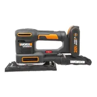 Аккумуляторная виброшлифмашина WORX WX820 подходит для обработки практически любых поверхностей. Поставляется в кейсе со сменными аксессуарами, зарядным устройством и батареей.