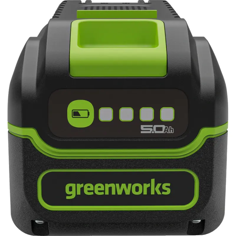 В комплект входит аккумулятор Greenworks G40HP5 5 Ач и зарядное устройство Greenworks G40UCM2M (40 В, 2 А)