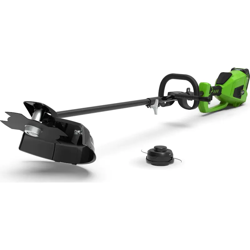 Аккумуляторный триммер для травы Greenworks поставляется с двумя рабочими насадками. Установите катушку с леской для регулярного скашивания травы или металлический диск для борьбы с сорняками на запущенном участке. Скорость оборотов регулируется двухпозиционным переключателем. Вы можете выбрать наиболее подходящий скоростной режим для своих задач.