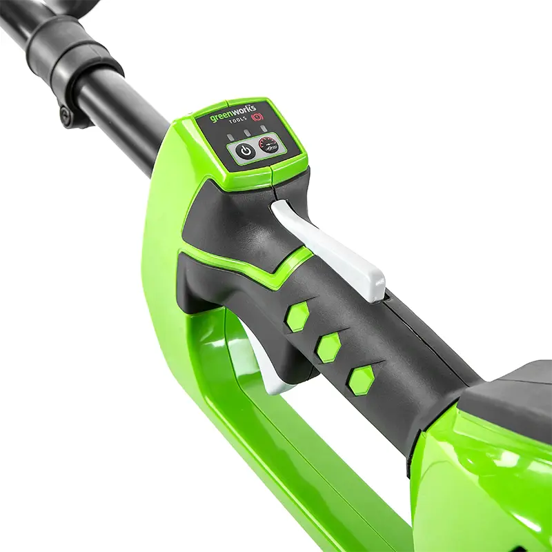 Инструмент отличается простотой и удобством в использовании. Чтобы начать работу, достаточно установить батарею и нажать кнопку. В комплектацию триммера Greenworks GD40BC входит мощный аккумулятор большой емкости, который обеспечивает продолжительную работу на одном заряде.
