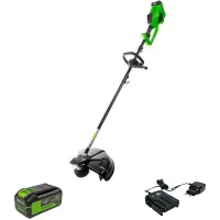 Аккумуляторный триммер Greenworks GD40BCK4 оснащен пильным диском, который поможет справиться с высокой травой или мелким кустарником. Модель поставляется с зарядным устройством и батареей, а потому вам ничего не придется докупать для работы с инструментом.