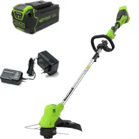 Благодаря системе TORQDRIVE, повышающей крутящий момент, легкий триммер имеет большую ширину скашивания - 38 см. Для советующей настройки нужно переставить нож для подрезки лески на защитном ограждении триммера (при поставке триммер настроен на 33 см). В аккумуляторном триммеру Greenworks GD40LT также применена двухсторонняя ударная (полуавтоматическая) подача лески, обычно используемая в мощном инструменте. Для подачи лески достаточно коснуться травы при работающем триммере.