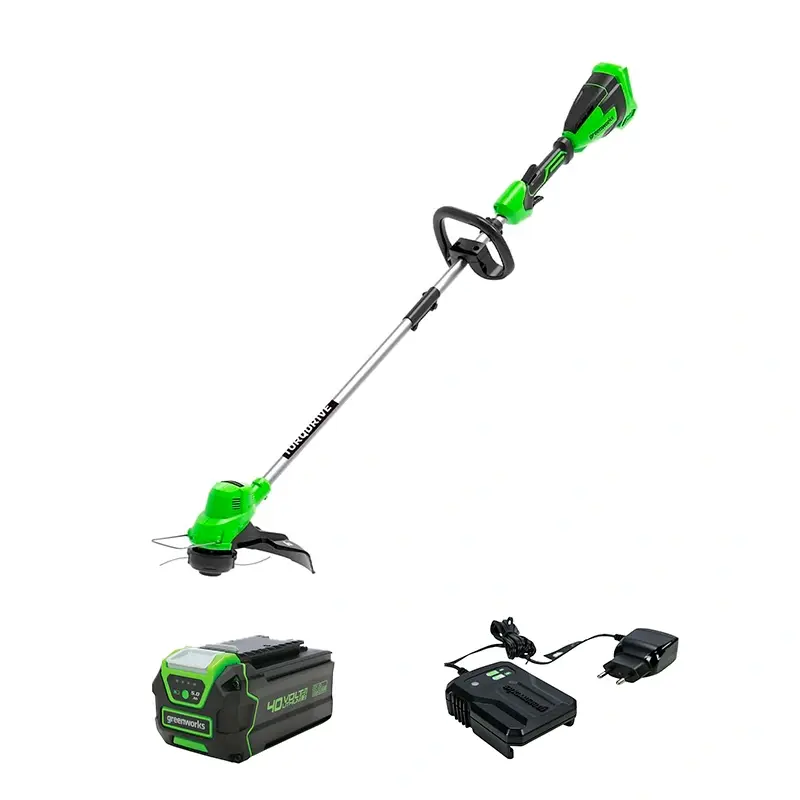 В комплект входит аккумулятор Greenworks G40B5 (40 В, 5 Ач) и зарядное устройство Greenworks G40UCM2M (40 В, 2 А)