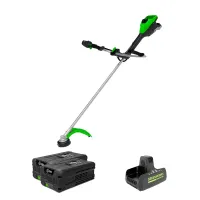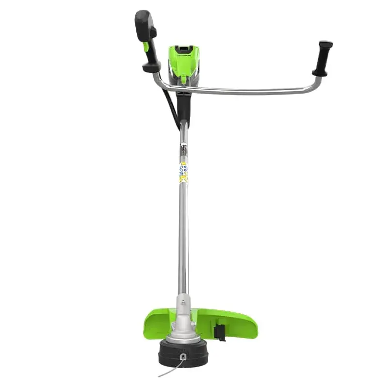 Аккумуляторный триммер для травы Greenworks оборудован бесщеточным электродвигателем, который экономно расходует энергию батареи и не требует технического обслуживания. Мотокоса поддерживает три режима работы, которые отличаются скоростью вращения оснастки. Инструмент автоматически регулирует обороты двигателя в зависимости от нагрузки. Рукоятка велосипедного типа повышает производительность работ, позволяя совершать размашистые движения по дуге. Кнопка реверса включает вращение оснастки в обратную сторону. Это помогает быстро очистить триммер от намотавшейся травы.