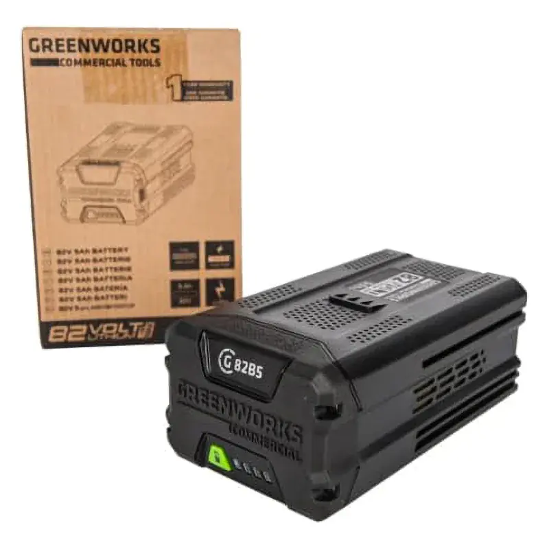 В комплект входит аккумулятор Greenworks G82B5 (82 В, 5 Ач) 2 шт. и зарядное устройство Greenworks G82C2 (82 В, 8 А)