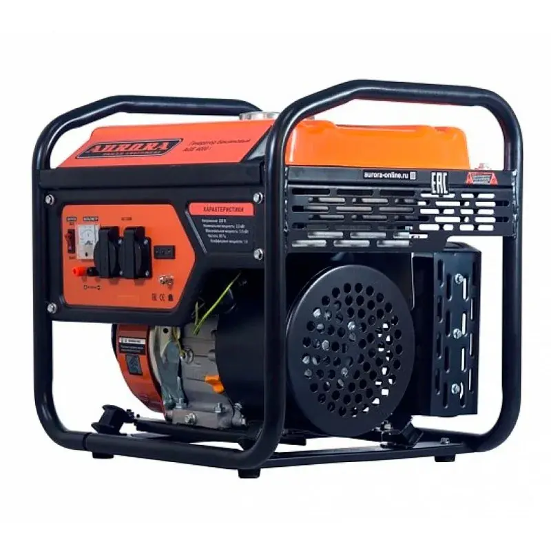 На панели управления бензинового электрогенератора Aurora AGE 4000 І установлен стрелочный вольтметр, который позволяет контролировать рабочее напряжение. Две розетки по 220 В дают возможность подключить одновременно несколько потребителей. Они оборудованы пластиковыми крышками, которые защищают контакты от пыли и осадков.