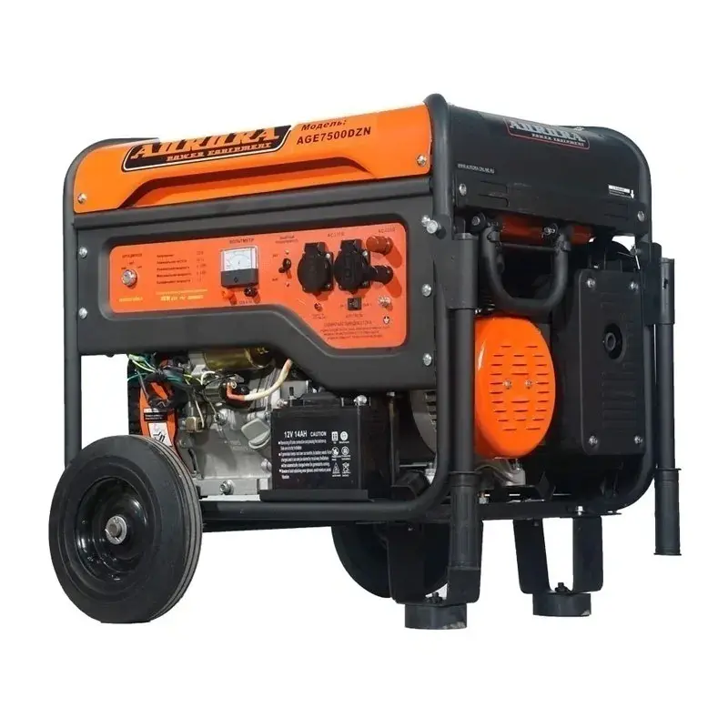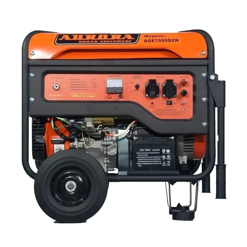 Бензиновый генератор Aurora AGE 7500 DZN с выходной мощностью 6 кВт оборудован блоком автоматики, который самостоятельно переводит питание дома на себя при остановке центрального энергоснабжения. Вы также можете запустить станцию вручную, воспользовавшись ключом электрозажигания или механическим стартером.
