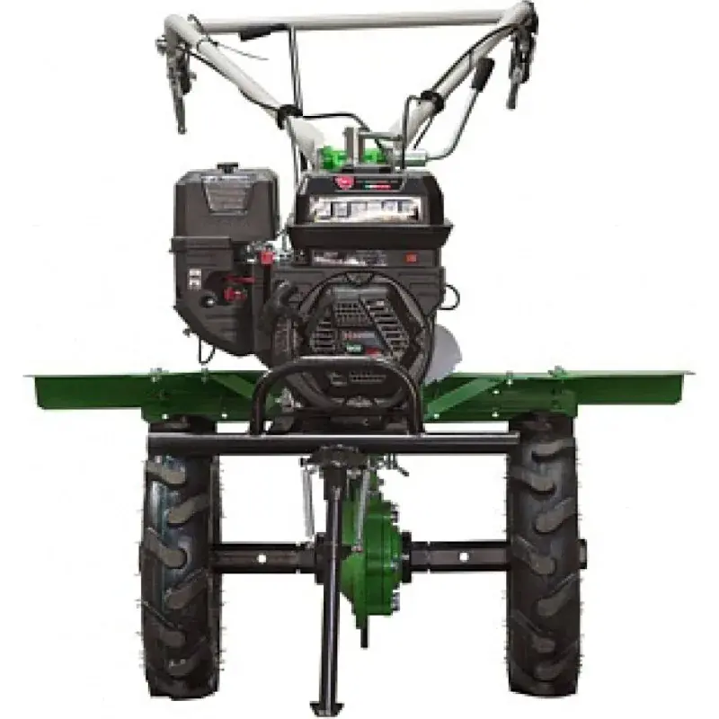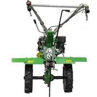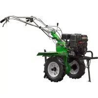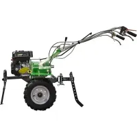 Бензиновый мотоблок оснащен одноцилиндровым четырехтактным двигателем с ручным стартером. Чугунный корпус редуктора надежен даже при вспашке тяжелого грунта. Бензобак объемом 3,6 л рассчитан на продолжительную работу без дозаправки. Вы можете выбрать ширину обработки: 800 или 1050 мм, устанавливая разное количество фрез. Максимальная глубина вспашки — 300 мм.