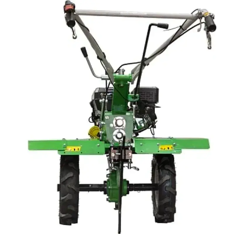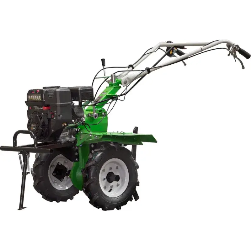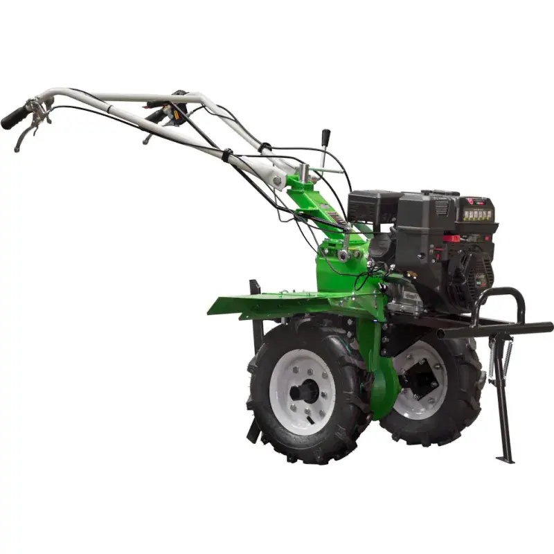 Большие пневматические колеса улучшают проходимость, а передняя подпорка обеспечивает устойчивость во время перерывов в работе. Фрезы или колеса надежно фиксируются на шестигранных осях мотоблока Aurora COUNTRY 1050. Усиленная сцепка позволяет использовать навесное оборудование.