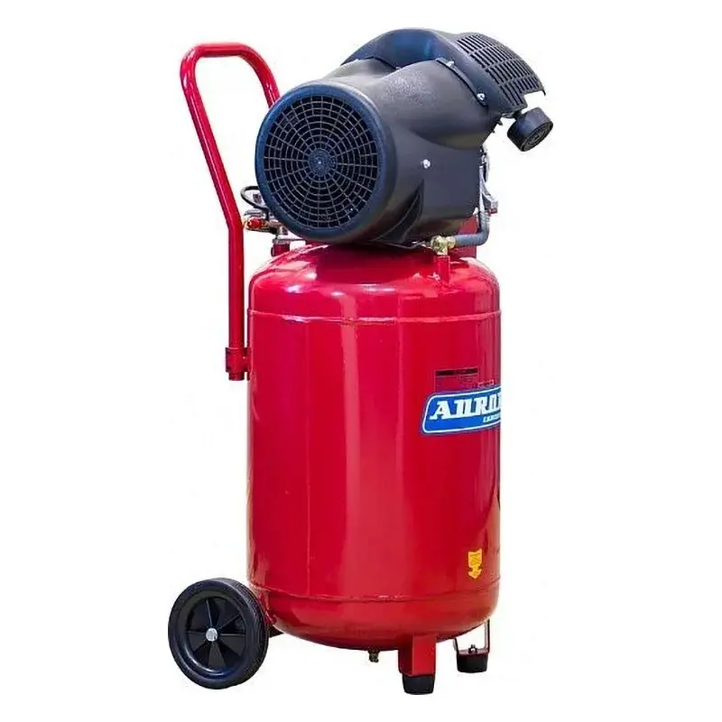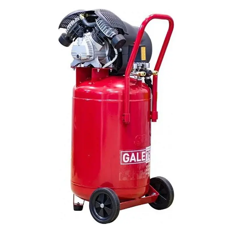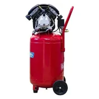 Компрессор с прямым приводом оснащен двигателем мощностью 2,2 кВт, который стабильно поддерживает 2850 об/мин. Устройство тепловой защиты отключает мотор при перегрузке. Для повышения производительности цилиндры V-образной поршневой группы имеют увеличенный диаметр 48 мм. Ресивер объемом 75 л изготовлен из стали толщиной 2,5 мм, выдает более сухой воздух за счет вертикального расположения, имеет клапан для слива конденсата.