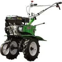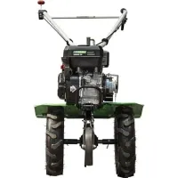 Четырехтактный двигатель заводится при помощи ручного стартера. Элементы управления удобно расположены под руками. Опуская ручки вниз, вы уменьшаете глубину вспашки и увеличиваете скорость движения бензинового мотоблока. Поднимая ручки выше, вы снижаете скорость машины. В экстренном случае двигатель легко заглушить, нажав кнопку переключателя.