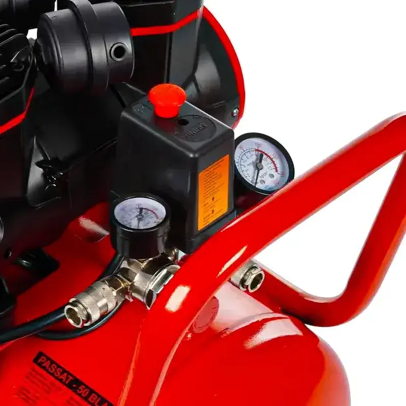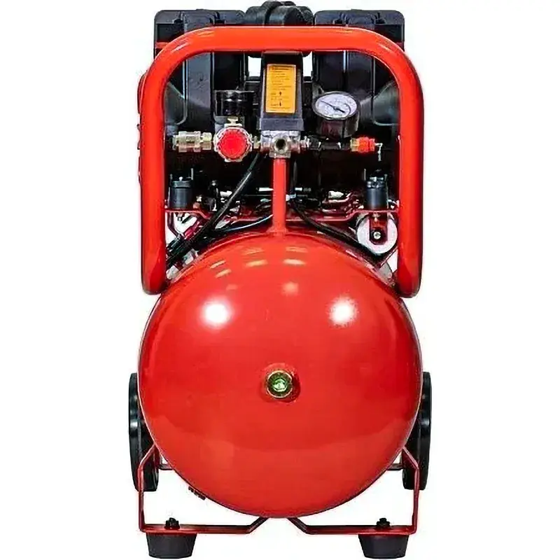 Безмасляный компрессор оснащен регулятором, позволяющим корректировать давление сжатого воздуха в сторону уменьшения или увеличения на выходе. Устройство работает в автоматическом режиме. Манометры помогают отслеживать значения в системе. Быстросъемные соединения позволяют легко подключать пневмоинструмент. Предохранительный клапан обеспечивает сброс давления в экстренном случае, предотвращая поломку подключенного пневматического оборудования.