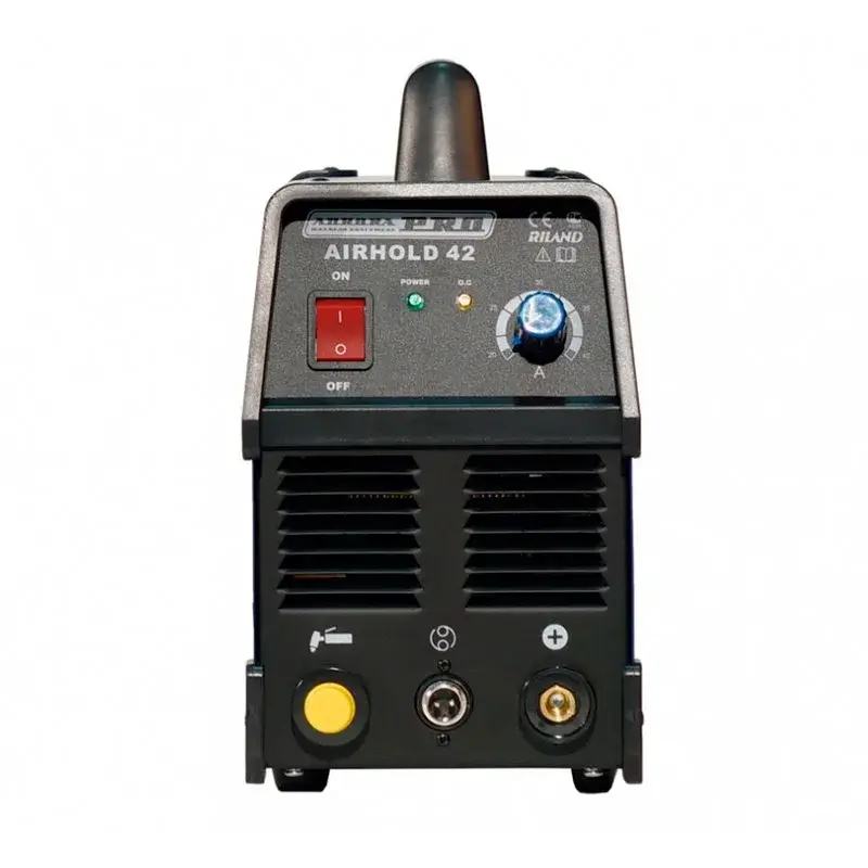 Инверторный аппарат AuroraPRO AIRHOLD 42 предназначен для плазменной резки любых токопроводящих материалов: мягкие стали, нержавеющие стали, оцинкованные стали, алюминий, медь и различные сплавы. Работа данным аппаратом отличается высоким качеством и высокой скоростью резки. При весе источника всего 9кг максимальная толщина разделительного реза листовой конструкционной стали составляет 12мм, а максимальная толщина реза малых конструкций и арматуры достигает 16мм! АИРХОЛД 42 питается от обычной сети 220В, что обеспечивает возможность работы с помощью данного аппарата практически везде. К плазморезу необходимо также подключить компрессор для подачи сжатого воздуха.