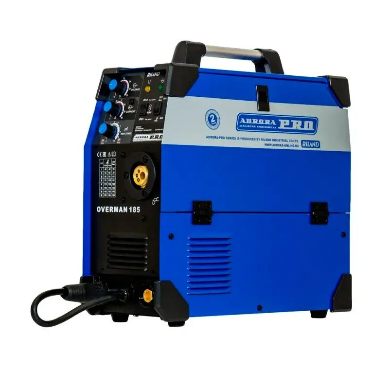 Сварочный инвертор AuroraPRO OVERMAN 185 предназначен для полуавтоматической сварки в среде защитного газа MIG-MAG, для работы с порошковой самозащитной проволокой в режиме NO GAS, а так же для ММА сварки покрытым электрдом. Благодаря продолжительному режиму работы на максимальных токах аппарат прекрасно подходит для работы как на бытовом так и на профессиональном уровне. В гараже, в автосервисе, на производстве - ОВЕРМАН 185, будет проявлять себя прекрасным и надежным помощником в деле. Линейка Overman показала неплохие результаты при работе с алюминием. Мы рекомендуем этот аппарат для бытовой и полупрофессиональной сварки данного металла. Нагляное управление всеми важными параметрами сварки на лицевой панели позволит настроить полуавтомат для выполнения широкого спектра сварочных работ. Отдельным плюсом аппарата является возможность сварки в сетях с большими просадками питающего напряжения - OVERMAN 185 способен работать при падении напряжения до 140 вольт.