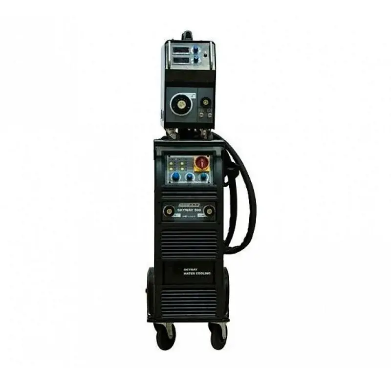 SKYWAY 500 – 3-х фазный инвертор для полуавтоматической сварки в среде инертного/активного защитного газа MIG-MAG и ручной дуговой сварки штучным электродом MMA, - как с источника так и с выносного подающего механизма. Тележка с подставкой под баллон, высокая компоновка аппарата, встроенная станция охлаждения, подающий механизм "декомпакт" в базовом комплекте поставки - все эти моменты существенно облегчают работу сварщика и значительно увеличивают время непрерывной работы аппарата. SKYWAY – это передовая технология инверторного блока IGBT, отличные сварочные характеристики и превосходная эргономика управления.