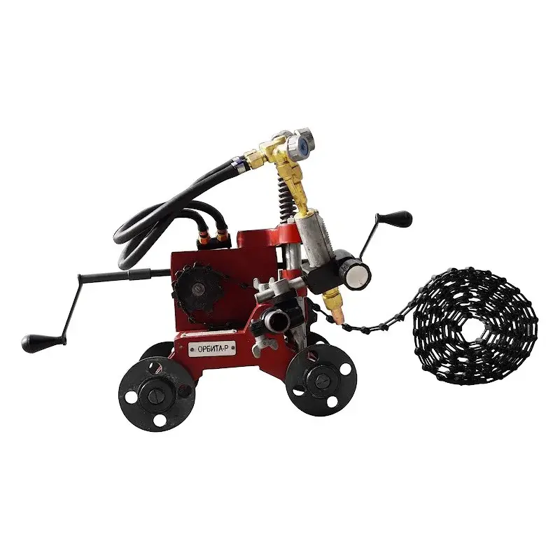 Машина Автоген ОРБИТА-Р пропан 0006491 предназначена для газопламенной резки стальных труб и других металлических конструкций. Ручной привод прост в эксплуатации и не требует особых навыков. Благодаря специальному направляющему бандажу машина обеспечивает высокое качество резки труб. Особенности АВТОГЕН ОРБИТА-Р 0006491 Простая регулировка длины цепи В зависимости от диаметра разрезаемой трубы, приводная крючковая цепь типа ПК-30-600 может разбираться или собираться до требуемой длины. Отсоединение звеньев цепи производится сдвигом одного из них. Преимущества АВТОГЕН ОРБИТА-Р 0006491 Автоген ОРБИТА пропан 0001953 обеспечивает качественный рез трубы за счет использования направляющего бандажа (пояса). Диаметр отрезаемых труб может варьироваться от 320 до 1420 мм с толщиной стенки от 5 до 75 мм. Для облегчения сцепления концов набранной цепи на одном ее конце предусмотрен стальной замок. Машина газовой резки может эксплуатироваться при температуре окружающей среды от -40 _ до +40 _C и относительной влажности воздуха до 90%. Небольшие габариты и простота в использовании.