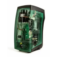 Не громоздкая, максимально эффективная по затратам энергии (высший класс А) и тихая в работе, насосная станция создана с использованием инверторного управления частотой мотора, что выводит ее на новый уровень среди конкурентов. Идеально подходит для построения систем водоснабжения и использования в сельском хозяйстве, например, полива посевных площадей. Мощная начинка, функциональность и управление облачены в скромный по габаритам, но при этом стильный темно-зеленый корпус из качественного технополимера (износостойкий пластик с усовершенствованными свойствами).