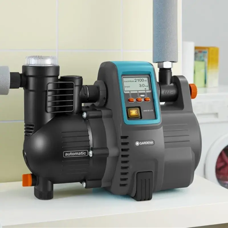С напорным насосом Gardena 5000/5E LCD Comfort, Вы всегда сможете сэкономить ваши деньги. Вы можете использовать дождевую воду там, где Вам необходимо: дома в уборной комнате или для стиральной машины, либо в саду для полива. Насос можно установить в качестве постоянного узла Вашей системы водоснабжения.