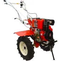 Двигатель имеет систему электрозапуска, позволяющую запустить мотор при помощи поворота ключа. Электро-пусковое устройство работает от аккумуляторной батареи, установленной на раму блока. Благодаря такому большому захвату фрезами, способен обрабатывать большие площади за меньшее количество проходов, а так же имеет отличную устойчивость.